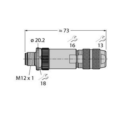 Field-Wireable Connector, Male Connector M12 × 1, Straight
