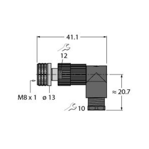 Field-Wireable Connector, Female Connector M8 × 1/Ø 8 mm, Angled