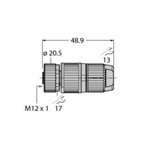 Field-Wireable Connector, Female Connector M12 × 1, Straight