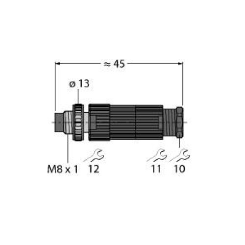 • Field-wireable male connector M8 × 1/Ø 8 mm