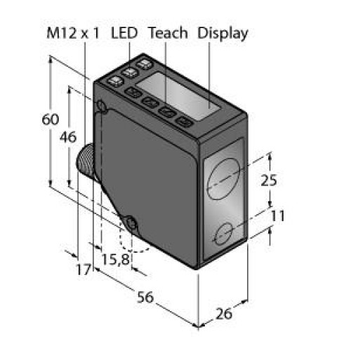 Laser Displacement Sensor, Range: 100-1000, Input: 12-30 V dc, Output: Analog: 4-20 mA, Discrete: NPN/PNP Configurable, M12 Integr