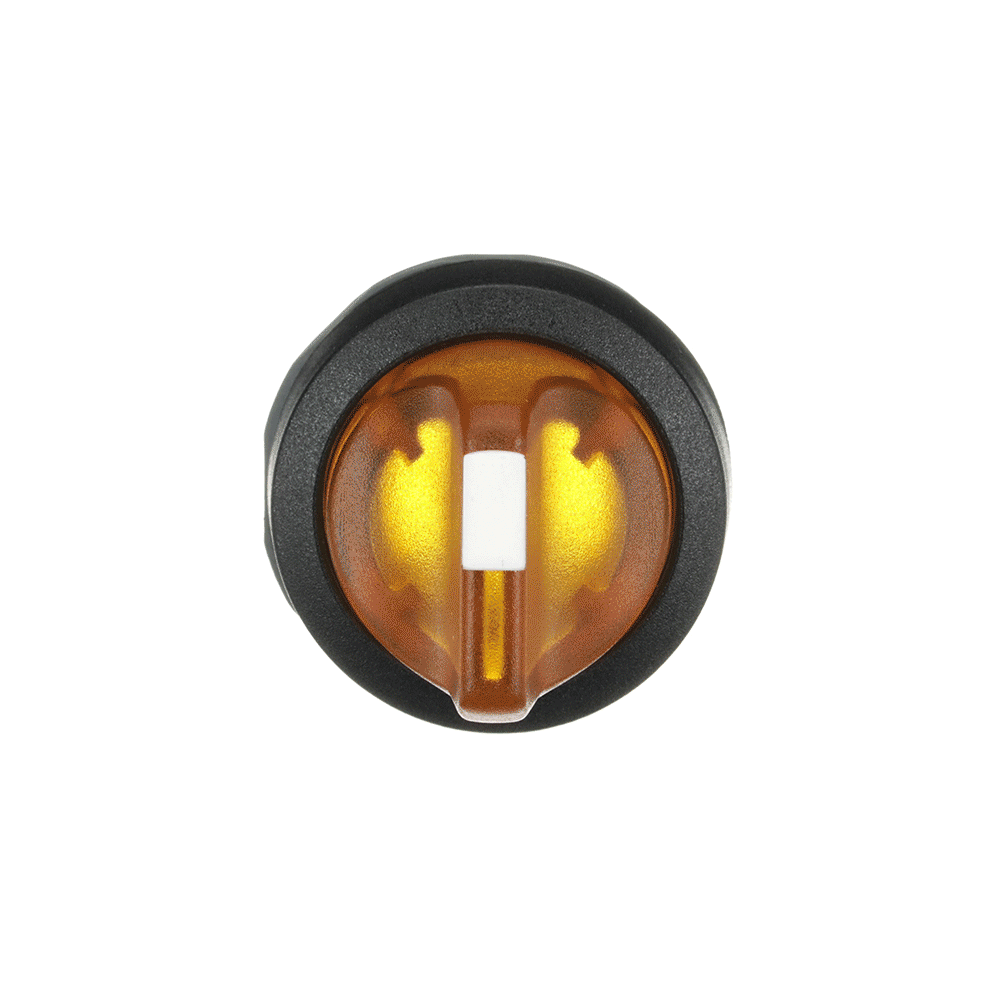 Modular Selector Switch - 3-Pos Maintained/Momentary, B and C fixed, spring return from A to B - Short handle - Yellow - Illuminated - Black plastic - No contact block