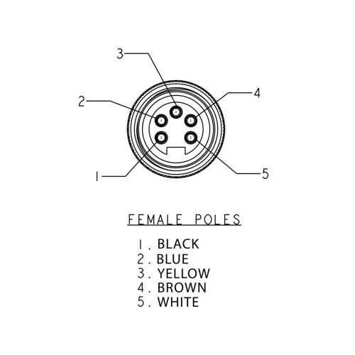 Cordset: Single Ended 7/8 in, 5-pin Straight Female, 9.14 m 5x18 Black PVC Jacket, Nylon Black Coupling Nut