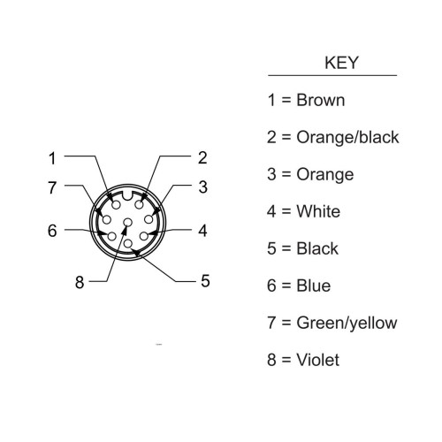 Cordset: Single Ended M12, 8-pin Straight Female, 9.14 m 8x22 Yellow PVC Jacket, Nickel-Plated Brass Coupling Nut