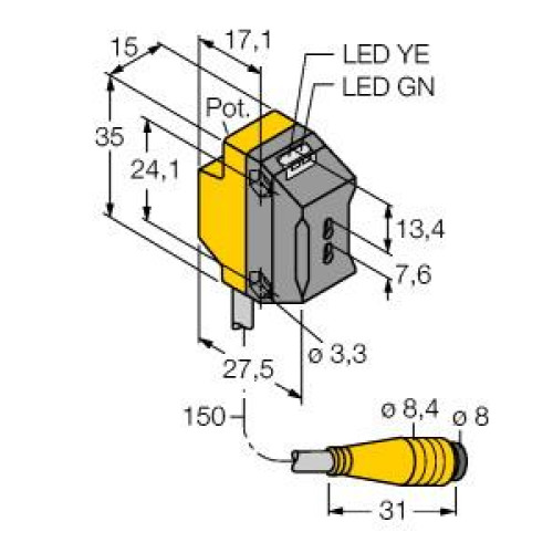 • Cable Length: 0.15 m, 4-pin, PVC