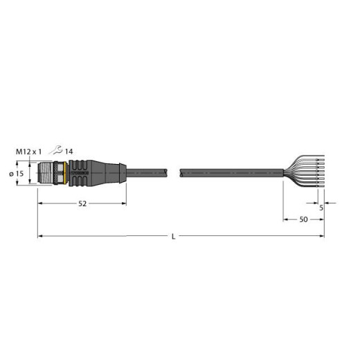 • Male M12, straight, 8-pin
