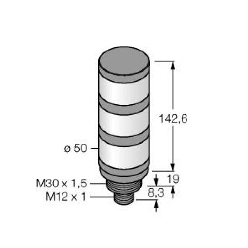 TL50 Tower Light, Gray Housing: 3-Color Indicator, Voltage: 18-30 V dc or 24 V ac, Environmental Rating: IP67, Input: Bimodal, Colors: Green Yellow Red, 4-pin M12 Integral QD
