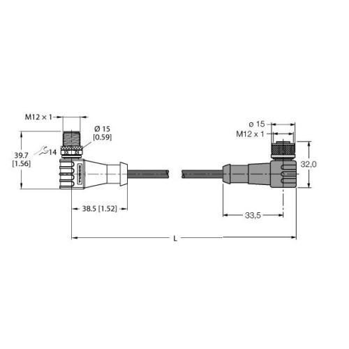 • Connectors: M12 female angled reverse-keyed, M12 male angled reverse-keyed