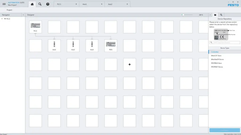 Quickly and reliably to a ready-to-use drive system – the Festo Automation Suite combines the parameterisation, programming and maintenance of Festo components in one program and enables the entire drive package, from the mechanical system to the controller, to be commissioned. Perfect for making industrial automation simple, efficient and seamless.