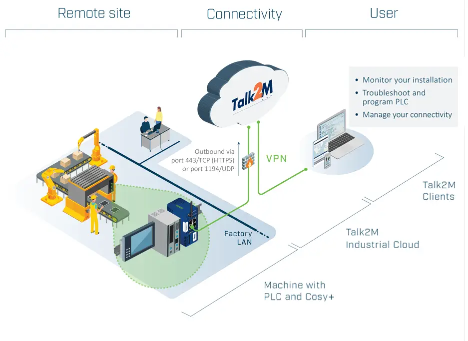 The result: a stable, secure outgoing VPN connection through the Ewon cloud for substantial savings in time and money.