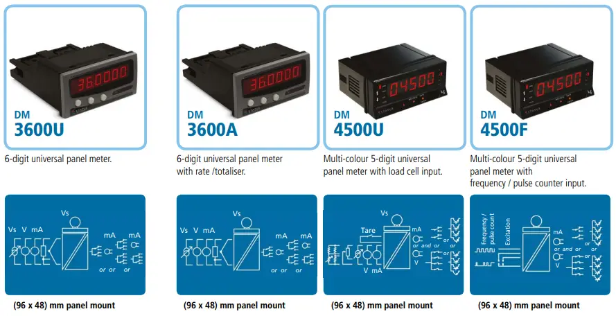 - The DM4500U accepts various types of sensors including Load Cell, PT100, Thermocouple, Potentiometer and Process current or voltage enabling the DM4500U to be used in a wide variety of applications. Output options are provided that include NPN / PNP, 2 or 4 relays, current / voltage and RS485 comms. The unit can be fully programmed from the front panel buttons or via the RS485 comms option.