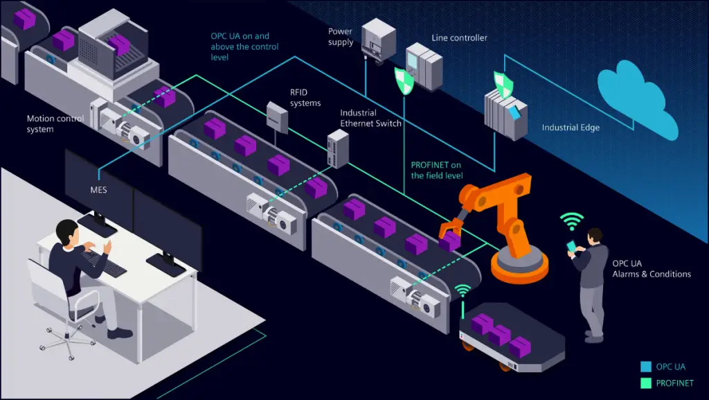 To implement the consistent, end-to-end digitalisation of OT and IT and make optimal use of OT and IT data, Siemens combines the benefits of two Ethernet standards: PROFINET and OPC UA.