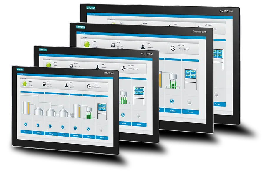 SIMATIC IFP Basic devices feature touch operation and are available in 4 display sizes: 12″, 15″, 19″ and 22″.