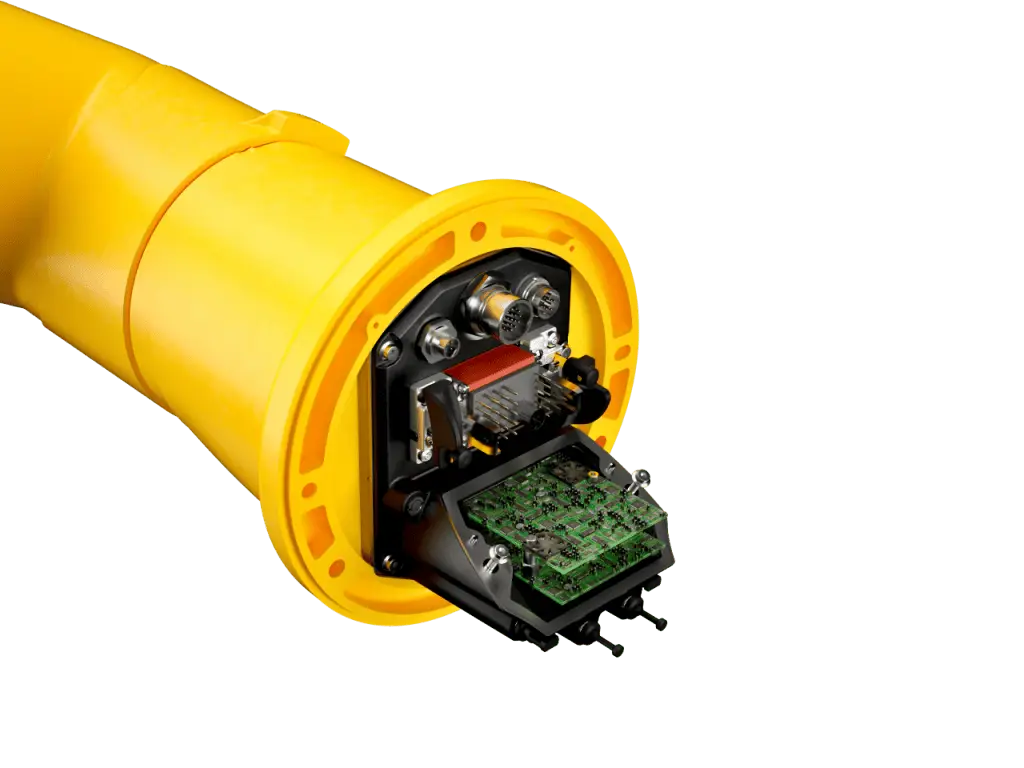 - Hygienic encapsulated 6-axis arm enabled by hollow shaft drives, no external cables
