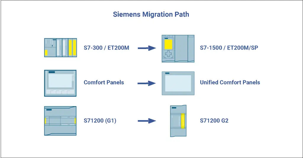The schematic below shows a typical migration path of Siemens products. If you are looking to migrate, our experts are at hand to help.
