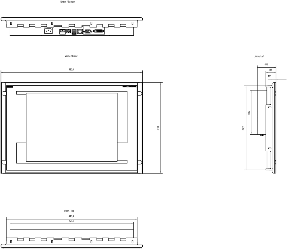 SIMATIC Flat Panel 15T, 15-inch Touch TFT screen with 1024x 768 pixels resolution for 24 V DC and 12