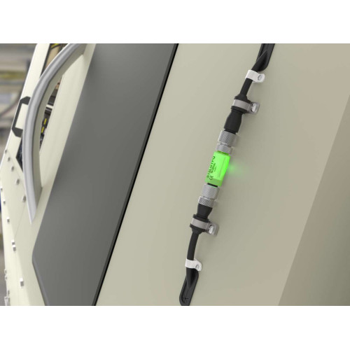 S15L Series: 2-Color In-Line Sensor Status Indicator, Voltage: 10-30 V dc, Housing: Polyurethane, IP67, Input: PNP, Colors: Yellow Green, Male-Female 4-pin M12 Integral QD